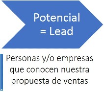 El término anglosajón LEAD el cual se está usando mucho últimamente para la EDV Escuela de Vendedores es equivalente a Clientes Potenciales u Oportunidades de Negocios. Es decir un LEAD es un cliente con alto interés comprobado por comprar, con el tiempo y la suficiente capacidad económica para hacerlo.